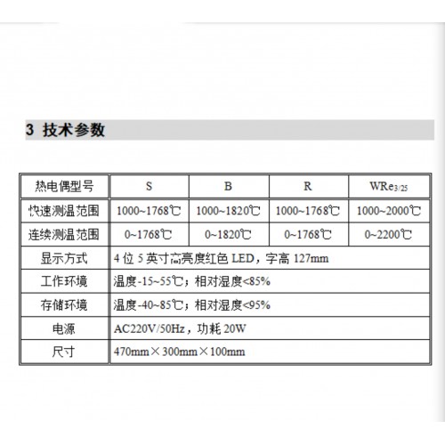 测温范围 1000~1768℃ 1000~1820℃ 1000~1768℃ 1000~2000℃